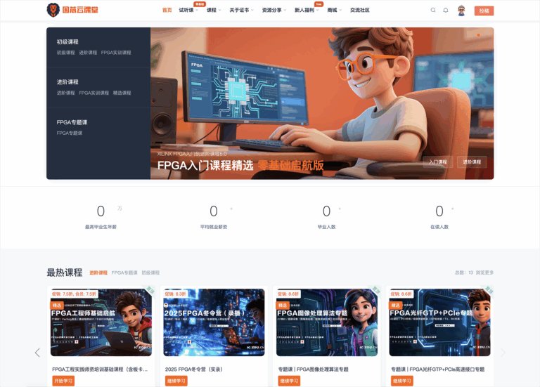 成电国芯FPGA云课堂作为专注于FPGA领域的在线学习平台,其核心优势可从以下五个方面展开详细说明: 1. 专注FPGA领域,课程体系…
